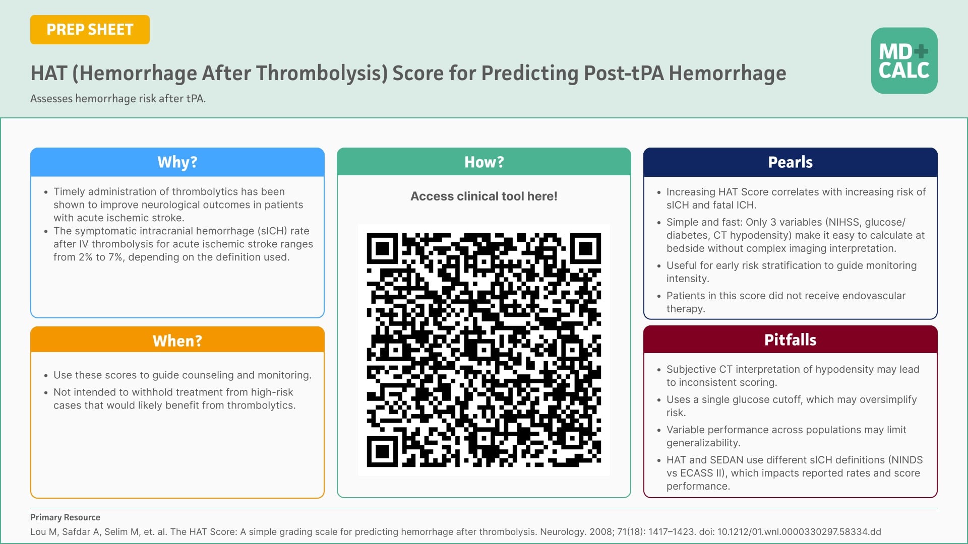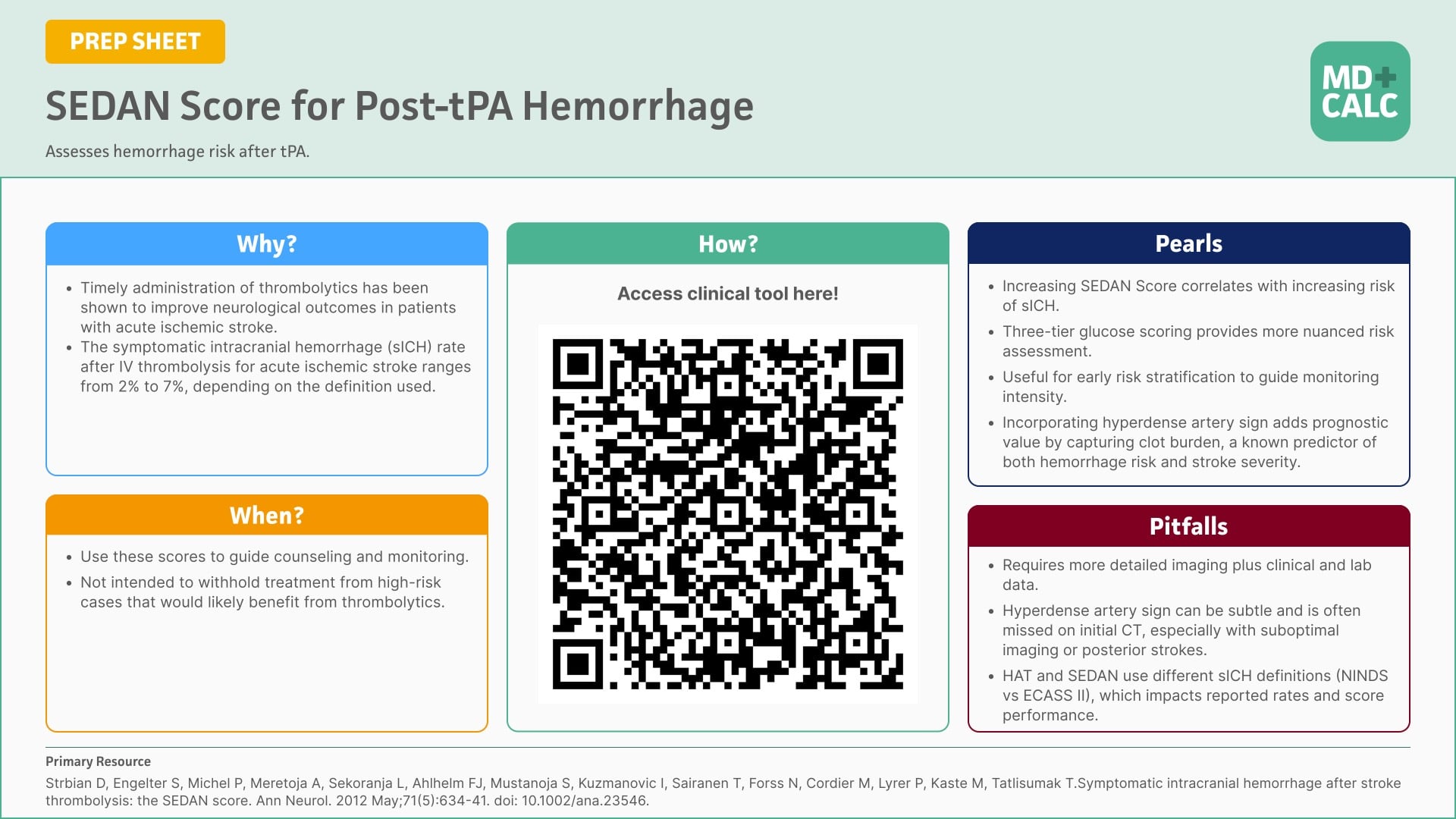 - 🧠 HAT and SEDAN help estimate symptomatic intracranial hemorrhage risk after stroke thrombolysis and can support real-time bedside counseling.