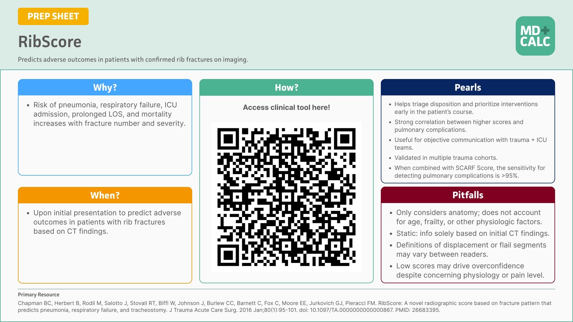 - 🖥️ RibScore = anatomy/CT risk — helps predict pulmonary complications and supports disposition decisions (floor vs stepdown/ICU).